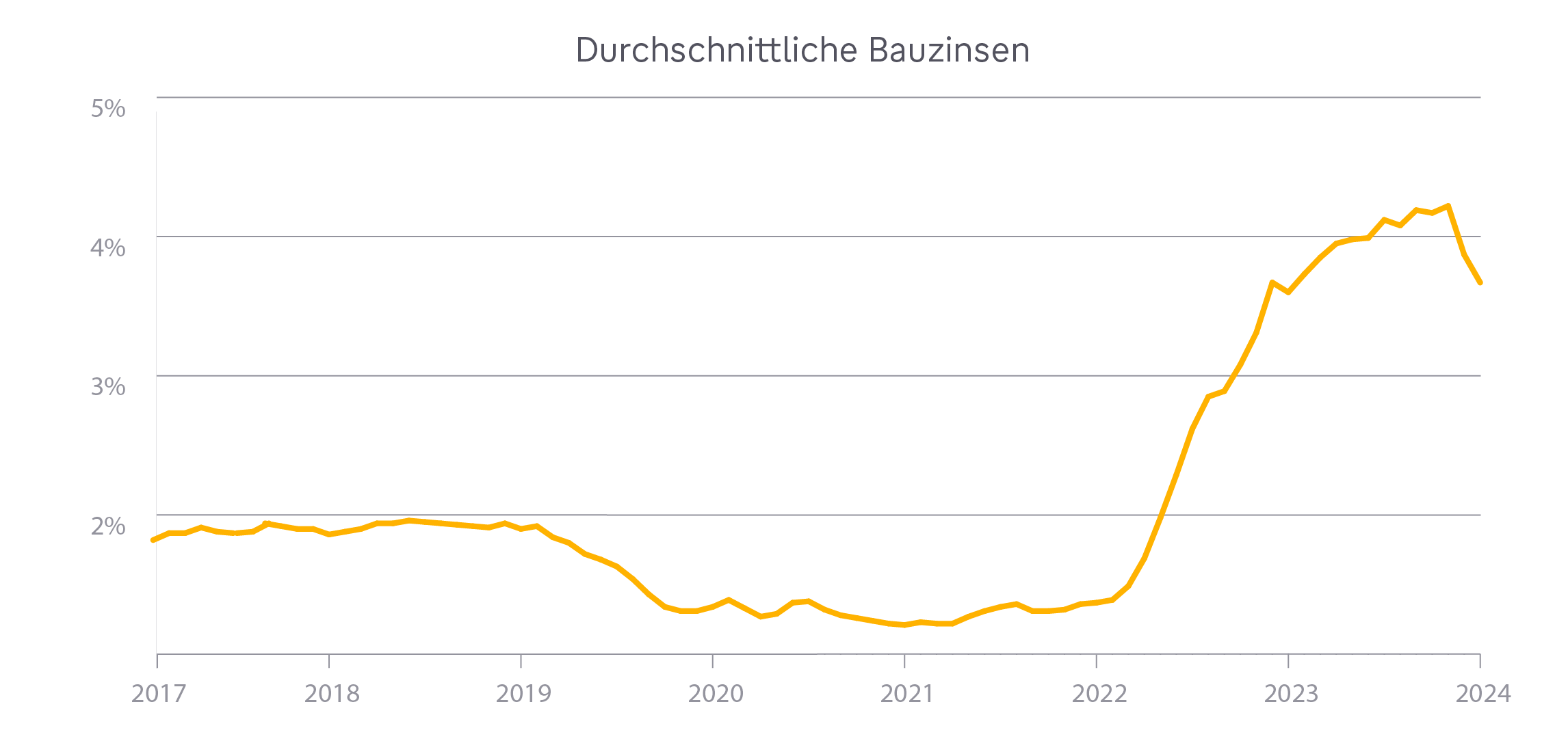 Wann geht der Zins wieder runter : Anfang Dezember 2023 rutschten die Zinsen auf 3,8 Prozent. Im Januar 2024 fielen die Raten auf 3,39 Prozent und liegen aktuell bei etwa 3,61 Prozent.